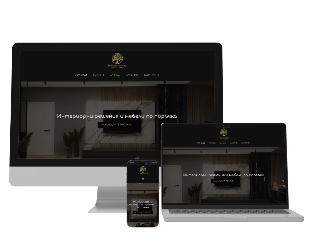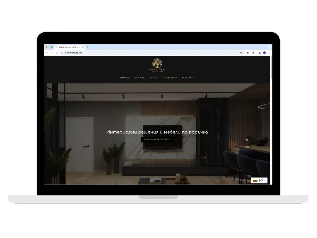 Създадохме модерен и функционален уебсайт за Marvenia House – мебелен магазин за мебели по поръчка. Проектът включва индивидуален дизайн, оптимизация за търсачки и постоянна поддръжка, осигуряващи удобно потребителско изживяване и видимост онлайн.
