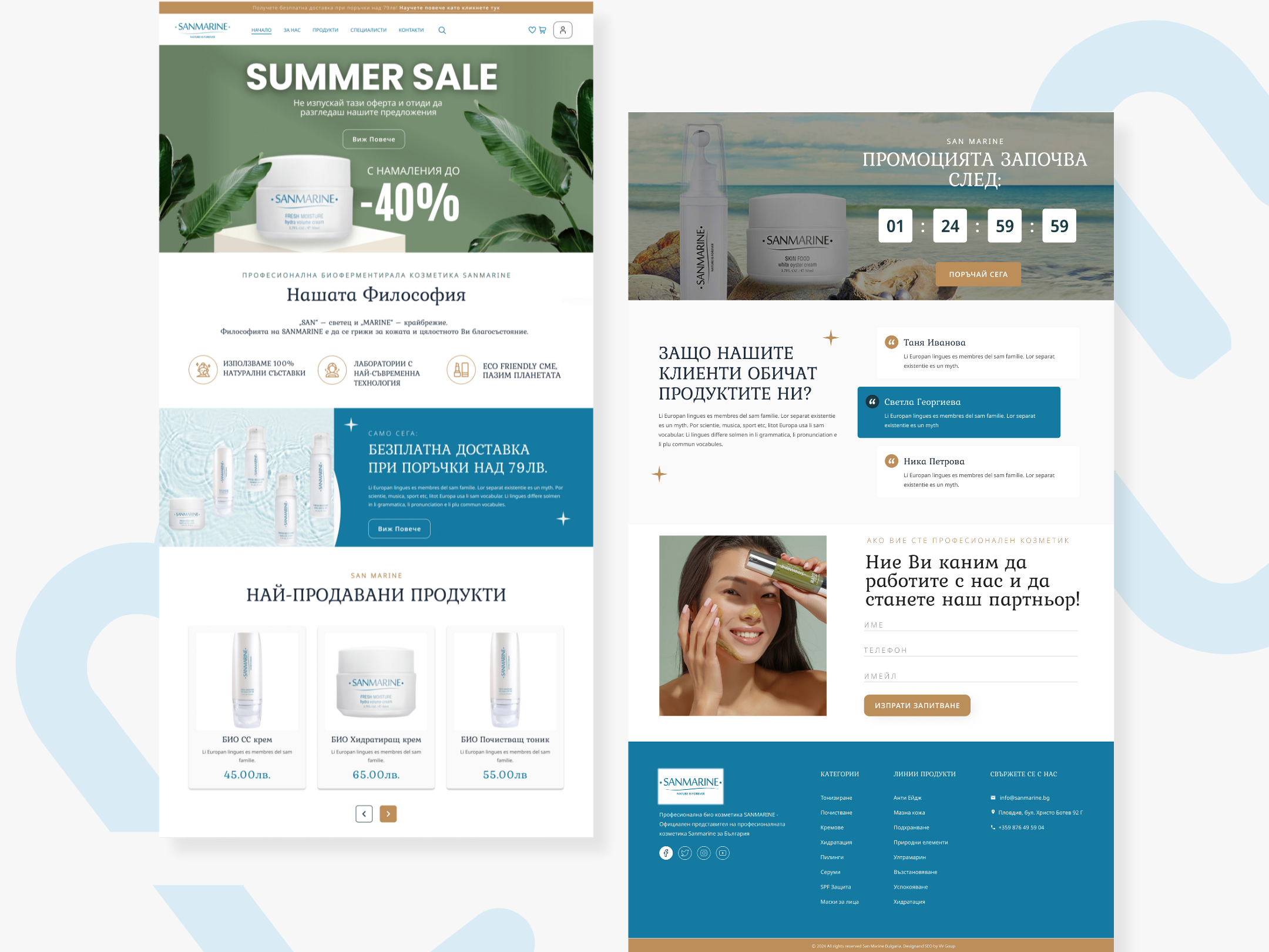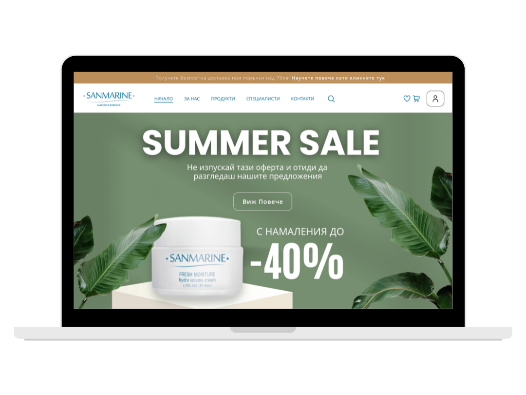 Редизайнът на уебсайта на San Marine – премиум бранд за биоферментирала козметика – съчета изискан стил с функционалност. Създадохме елегантна платформа с онлайн магазин, която подчертава високото качество на продуктите и осигурява лесно и приятно пазаруване на всяко устройство. Освен това, управлявахме социалните мрежи и реализирахме маркетингови кампании, насочени към увеличаване на познаваемостта на бранда и ангажиране на целевата аудитория.
